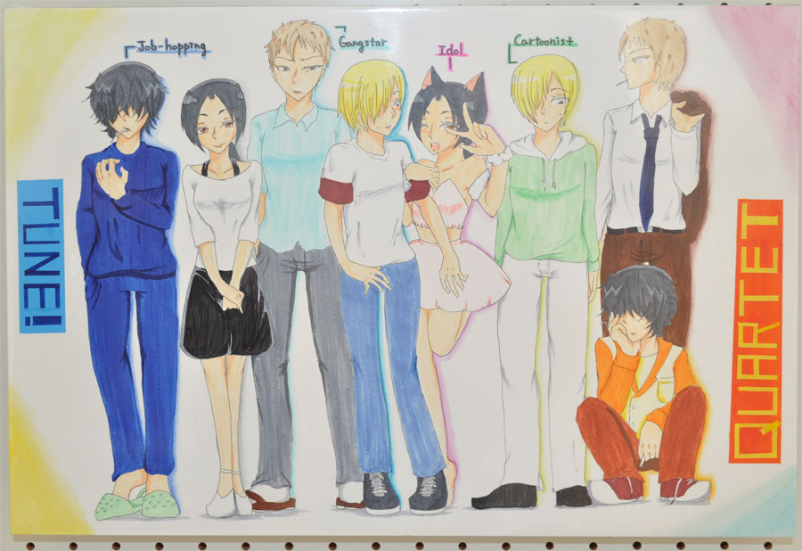 私は、中学時代に考えたオリジナルキャラクターの男の子たち4人を、ずっと動かしてみたいと思っていました。この作品は、そのキャラクターたちのマンガがもしアニメ化したらこんなオープニングがいい!という願望のもと、その男の子たちが自作したという設定で作ったアニメーションです。「かわいい」が<正義>になっているでしょうか?