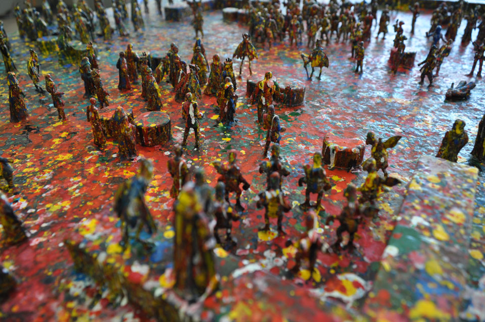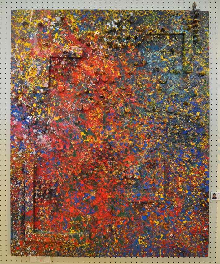 アクションペインティングで時間の経過を表現。人生という戦場で時間の経過と共に生きていく人々が戦い、ある者は壁を乗り越え戦場を突き進み、ある者は人生を捨てるかプレッシャーに押し潰され、死んでいく。しかし時間は残酷でありながら美しい。人の失敗も、成功も、それが他者の人々への土台となって人生の選択肢を広げてくれる。失敗した時間も成功した時間も何一つ無駄にはならない。明るい色と暗い色が入り混じり、喜びや怒り、悲しみ、人々の葛藤が時間の中にある。