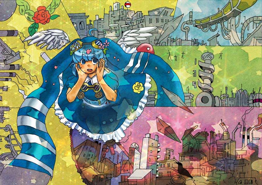 妖精である少女は、ある日羽を失くし、影が消え、鳥にすら姿が見えなくなり、花と散りゆきます。どこまでも続く道を「時間」、少女を「人の生涯」、そして少女を見た私達の「記憶」を花として描き、喪失感を演出しました。