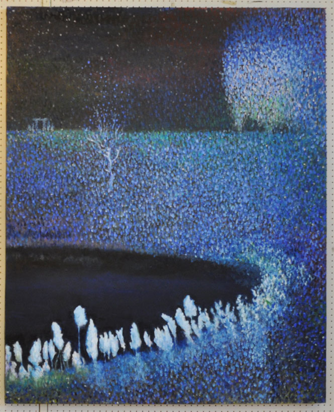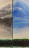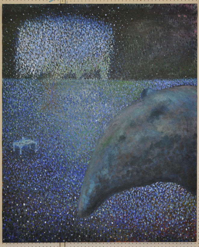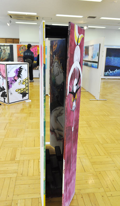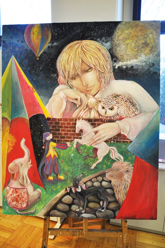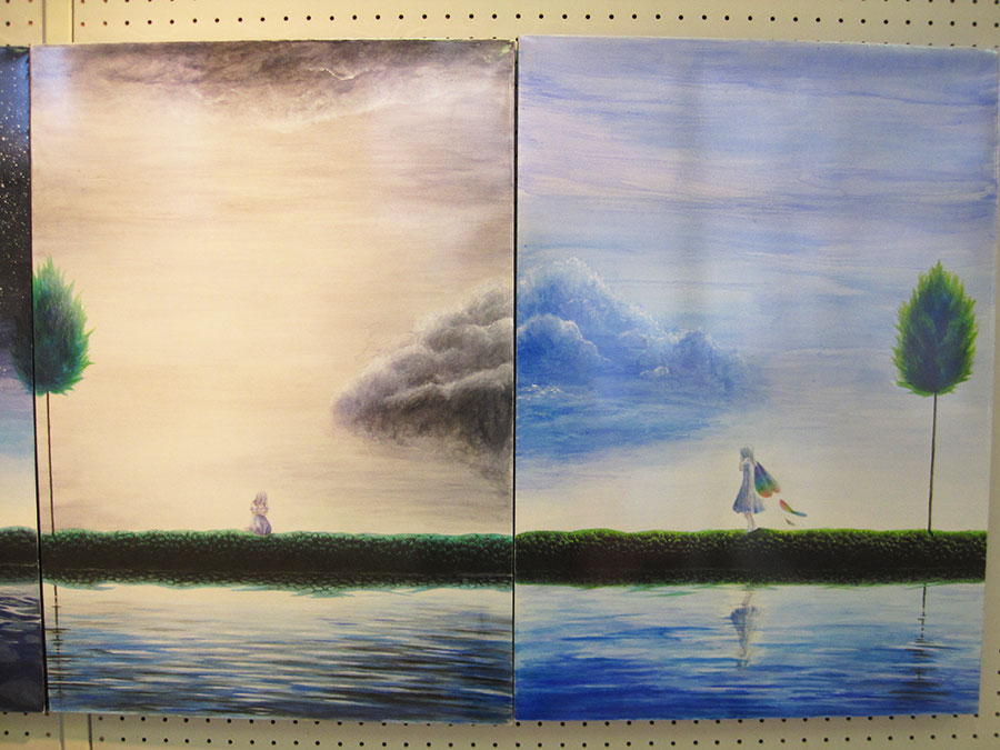 眠る時に見る「夢」に興味を持っているので夢をテーマに制作しました。「夢」は自分の想像を見ている筈がいつの間にか忘れていることが殆どです。その事が不思議で魅力的だったので夢の世界を2枚の油絵で表現しました。