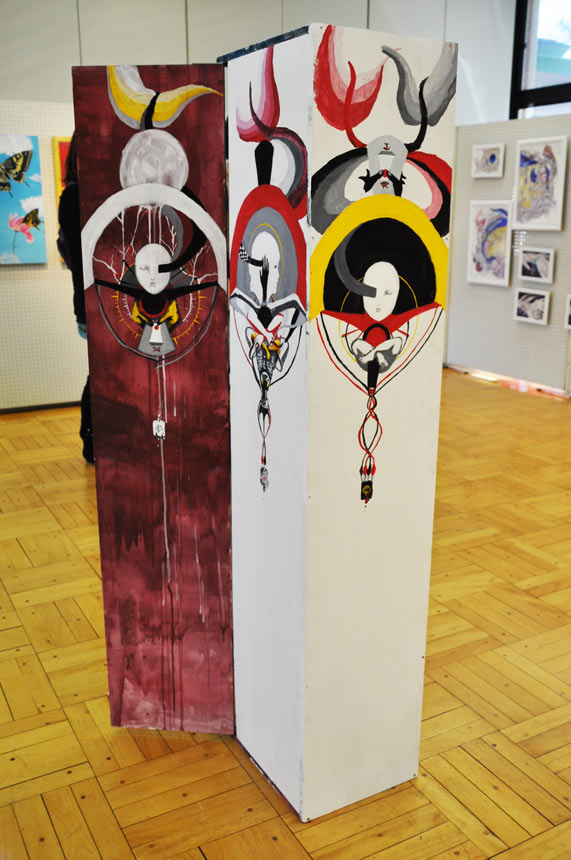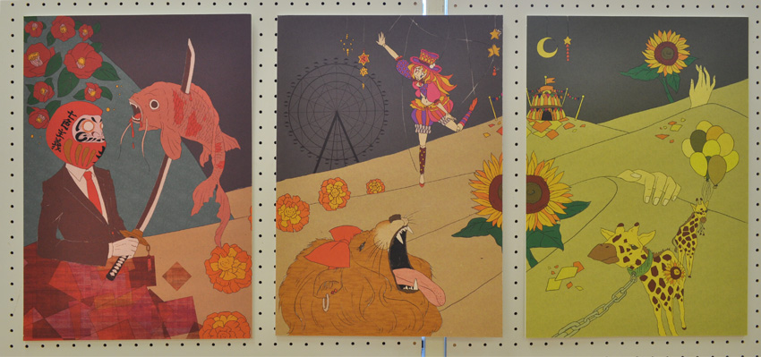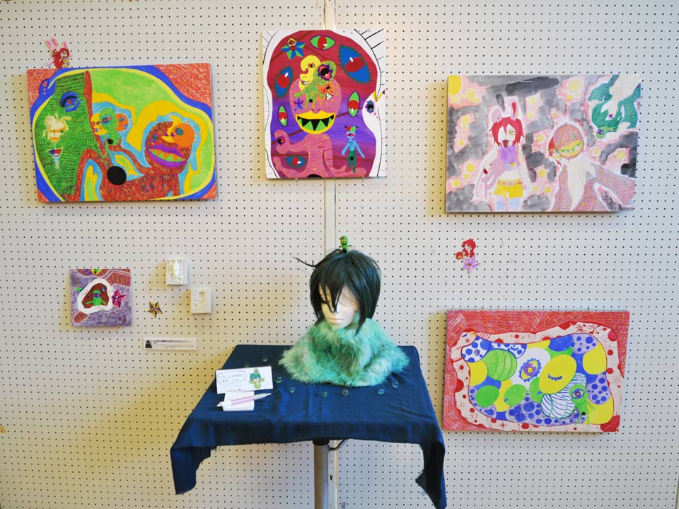 私は今回の卒業制作にあたり、自分の個性を最大に出せたと思いました。私は今回、ベタ塗りにこだわりました。ベタ塗りなら、自分の描いた謎のキャラクター達を生かせると思ったからです。