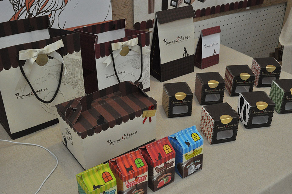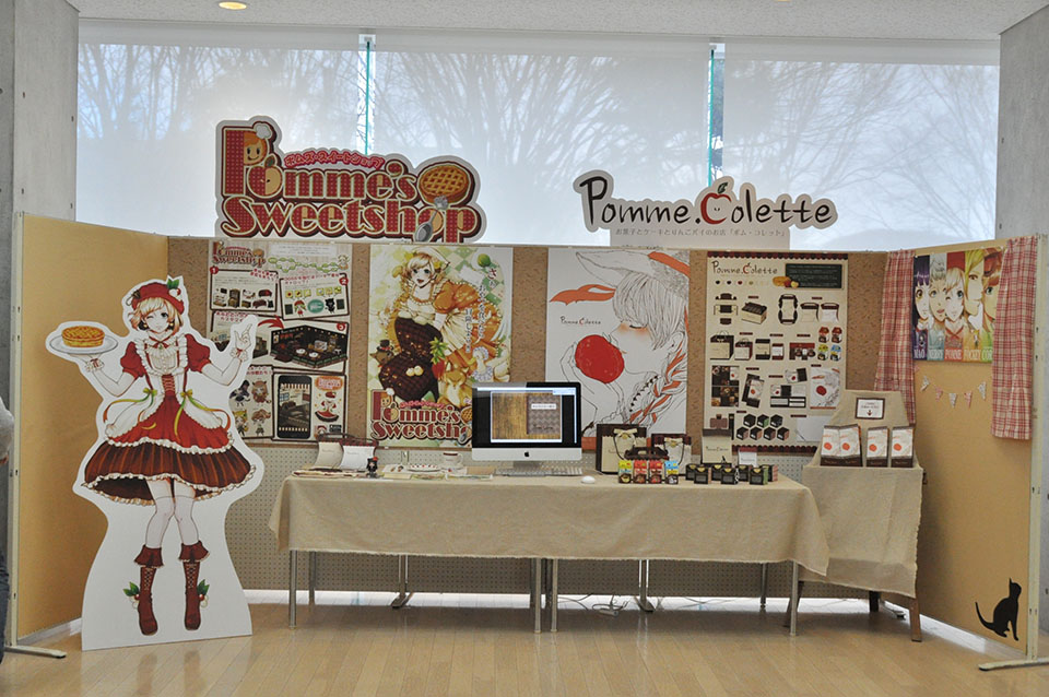 洋菓子店「Pomme・colette」とその宣伝アプリ「Pomme's sweetshop」の2つを展開しました。" さぁ、おやつを食べたら冒険しよう!!"