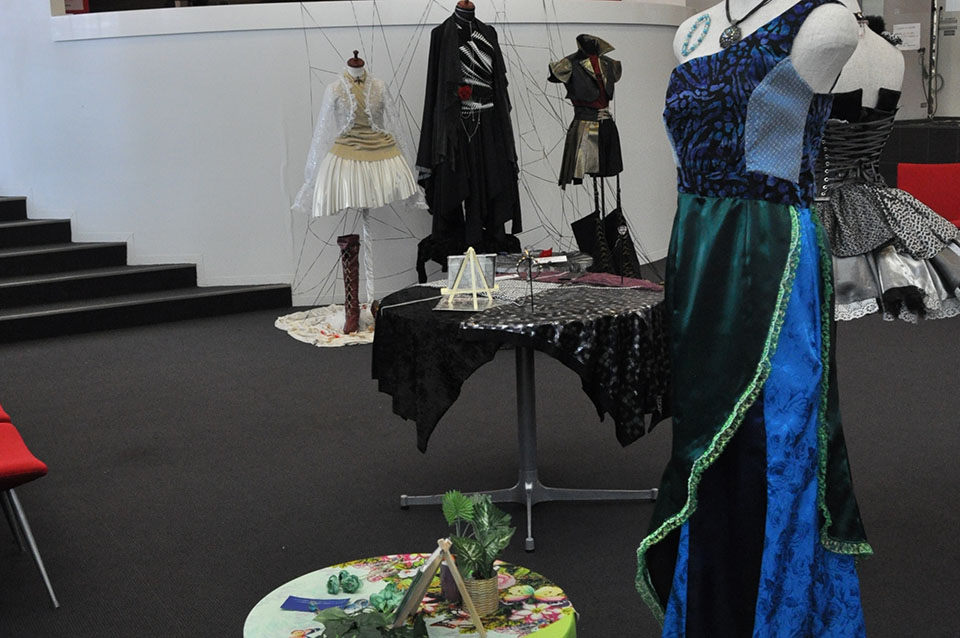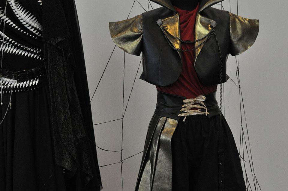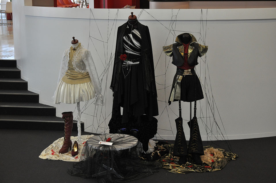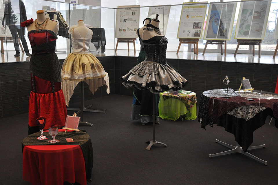 ロックとバラード、対照的なジャンルの音楽をテーマとしている。4 着それぞれ、ボーカリストや歌手のステージ衣装というコンセプト。ロックの黒の対照はバラードの白、ロックの赤の対照はバラードの緑。それぞれにカラーの違う音楽をドレスに表現した。