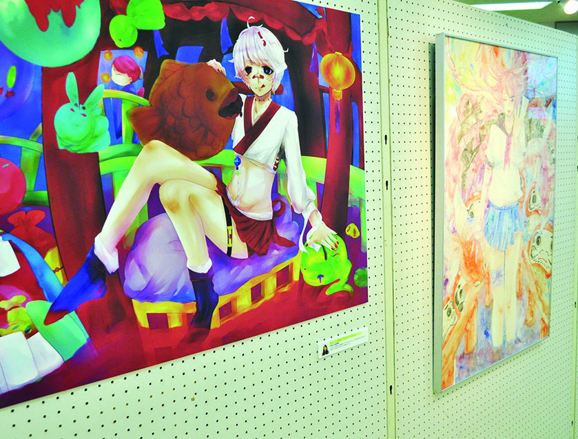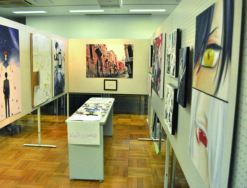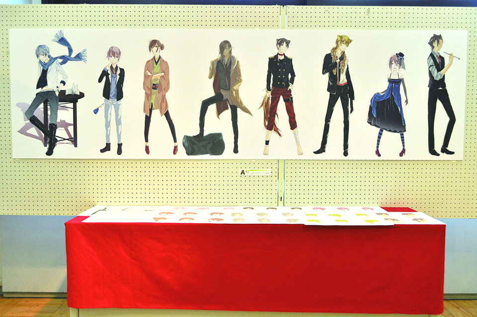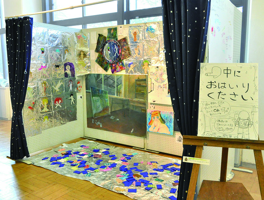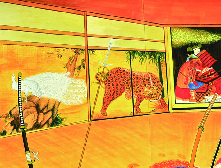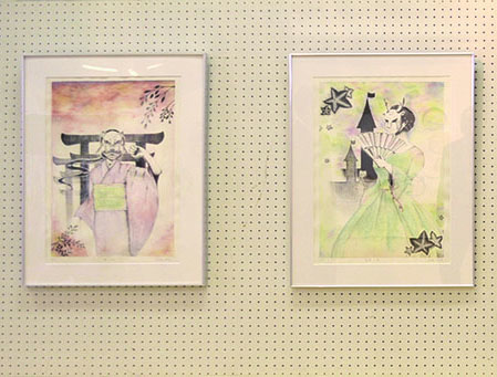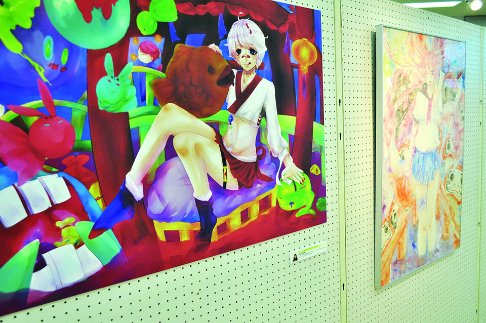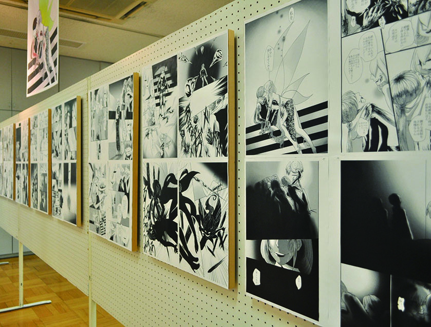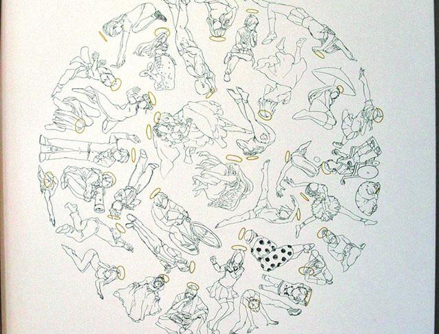 総大成とし自分の創作世界の主要人物を中心に描きました。黄金の球体に包まれ 独自の世界で生きる彼らを、永久の幸せを願い魔法使い達がそれらを守る様にし て囲っている様子を表現しました。