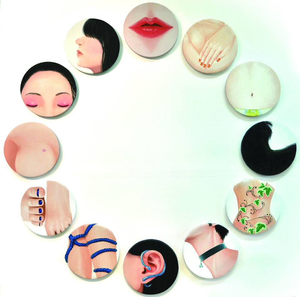 キスに込められた 22 個の想いを、色相環に当てはめて描きました。人の体の生々 しさだったり色っぽさを感じて頂ければ幸いです。 想い人にキスのメッセージを贈ってみてはいかがでしょうか。