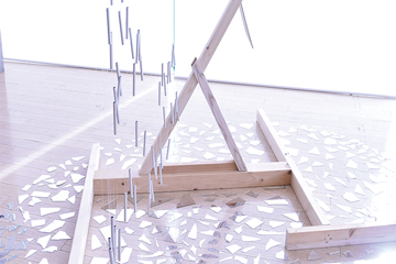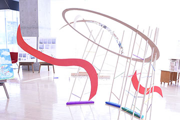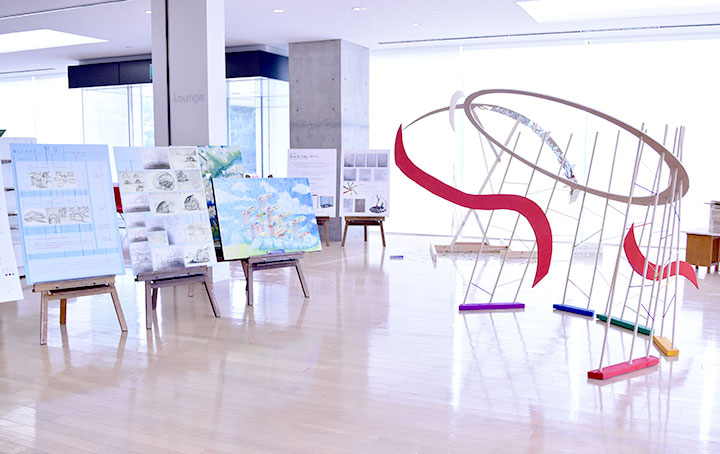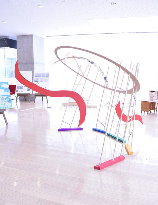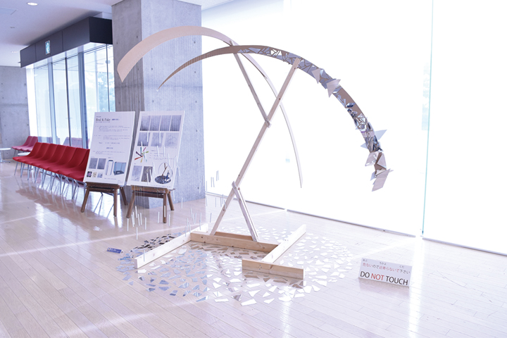 テーマは「自然の音と光」。自分が以前水泳で経験した事を若い水泳選手に向けた作品です。自由があまりない選手に共感性を感じてもらいたいです。自由が当たり前である人達の『フツウ』に帰りたいと思う空間を制作しました。