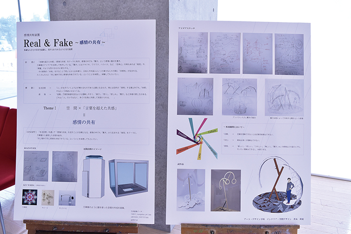 人と人が関わりを持てる「共感」することをテーマに感情共有装置を作りました。たくさんある感情の中で私は「驚き」をコンセプトにして、空間内ではホンモノの自分を発見できる驚きを体験してもらい、「共感」を促すことが目的です。