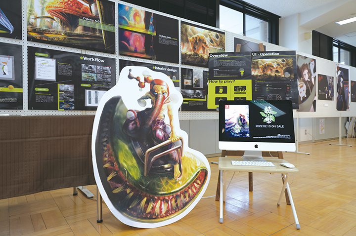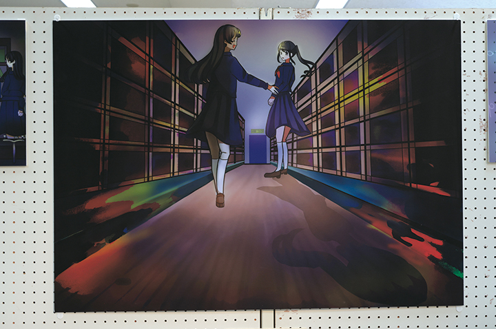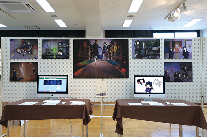 誰もいない音楽室から聞こえるピアノの音。トイレの花子さん。動く骨格標本などの学校に伝わる七不思議と共に、ホラー好きの女の子が夜の学校で過ごす時間をテーマに作品を制作しました。