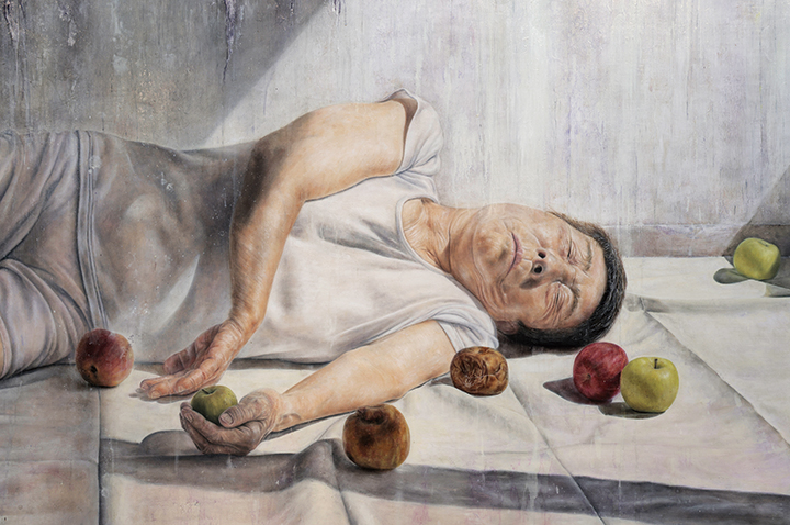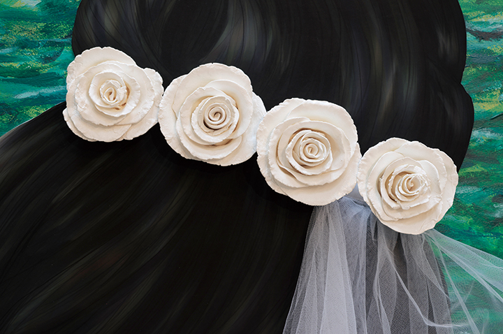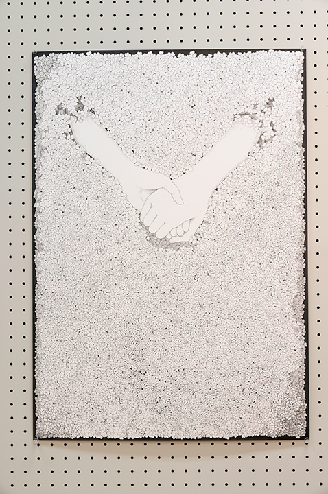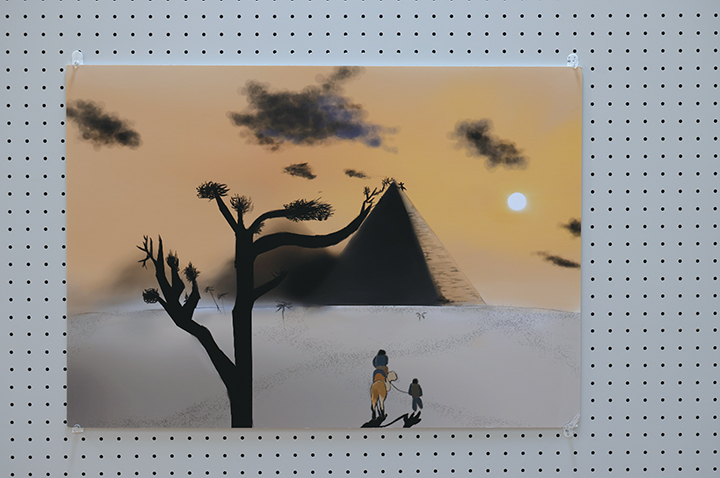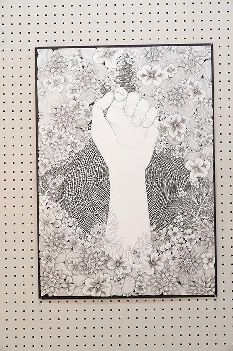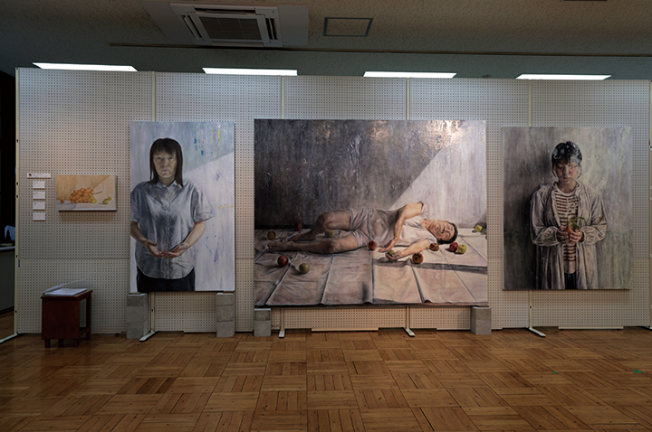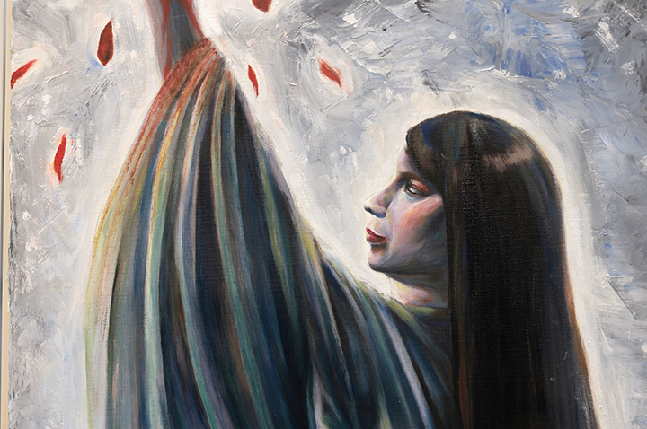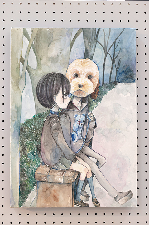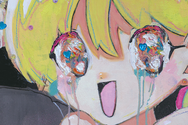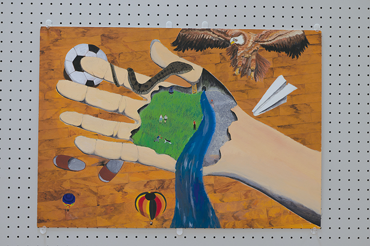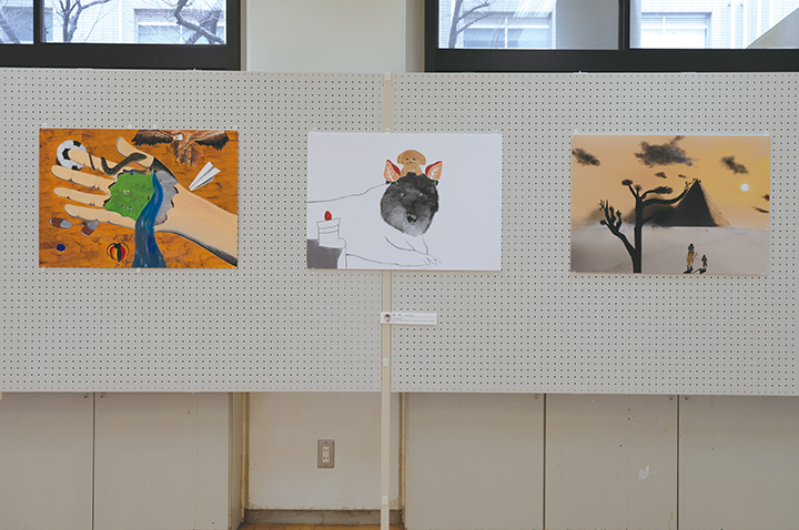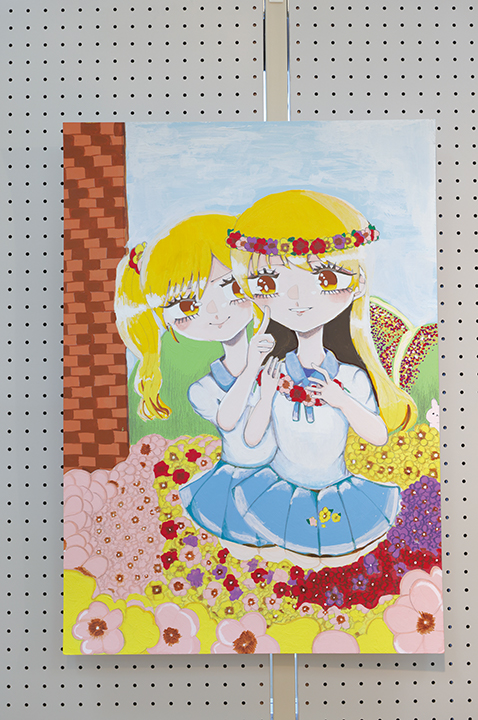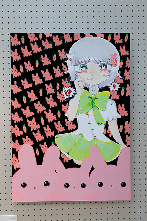 天使と悪魔を描きました。近くで見ても綺麗に見えるように細かいところまで描き込んでいます。キャラクターが対照的に見えるようキャンバスを上下反転させたり、色の配色などに気を付けながら制作しました。
