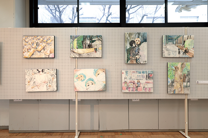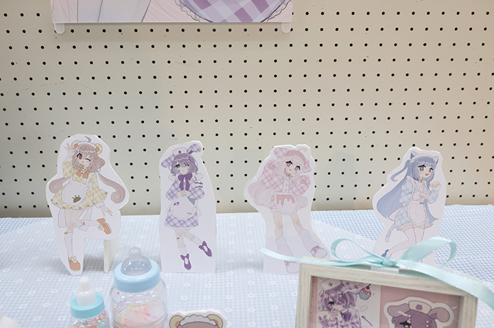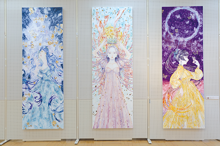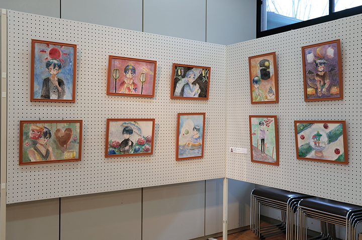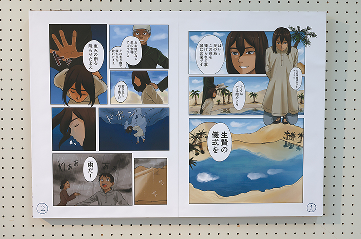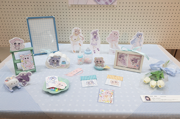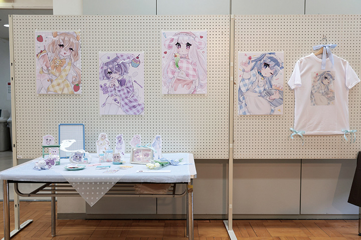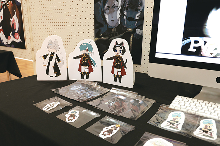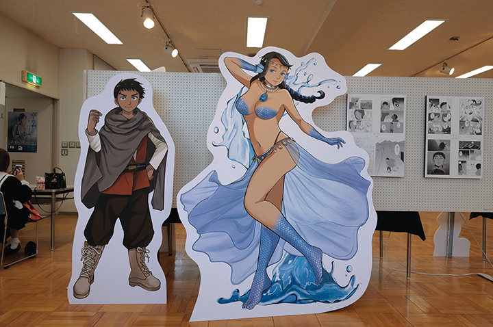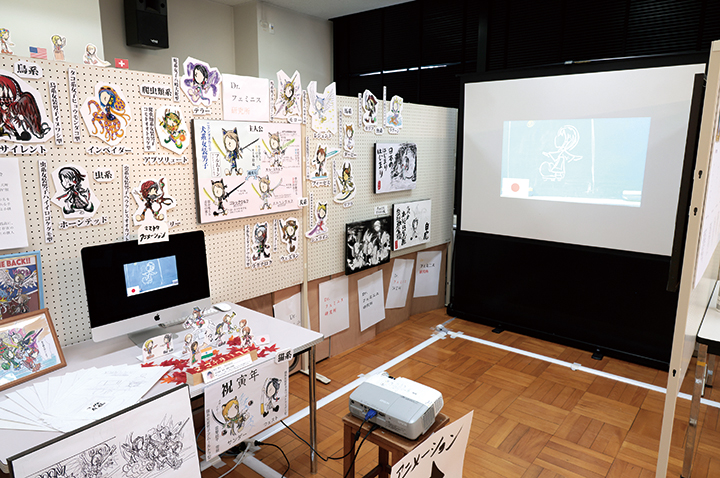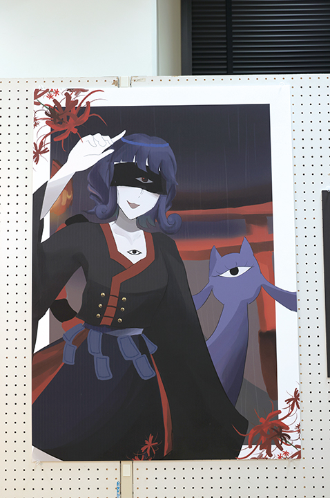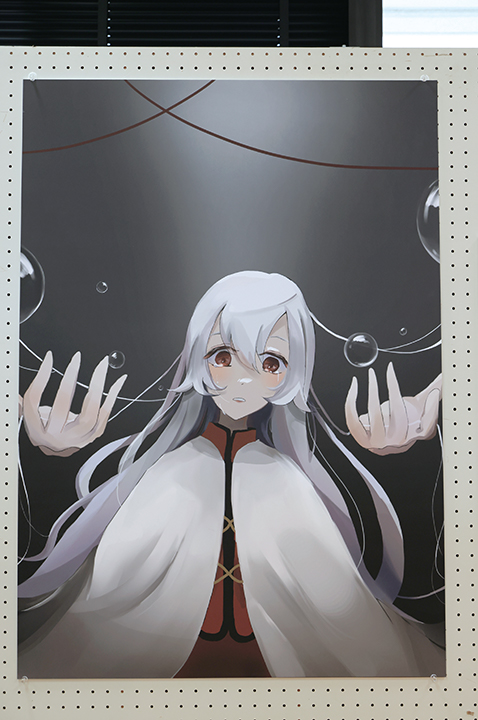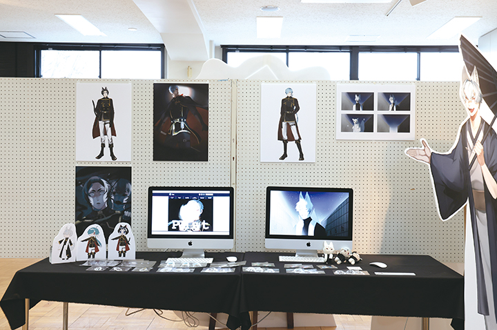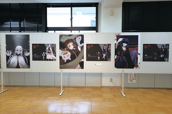 漫画、アニメーション、一枚絵+キャラ案とたくさん展示いたします。それぞれ漫画やアニメーション、一枚絵は違う世界観になっており、一目で三つの世界を楽しむことができます。それでは…