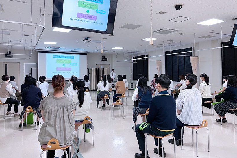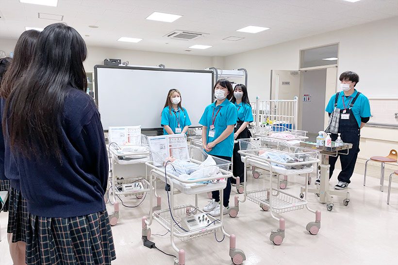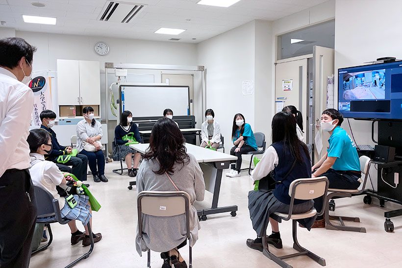 医療保健学部 看護学科では、看護棟の案内や演習室の紹介、模擬授業などぐんま未来大学についてもっとよく知ってもらえるようにつとめました。