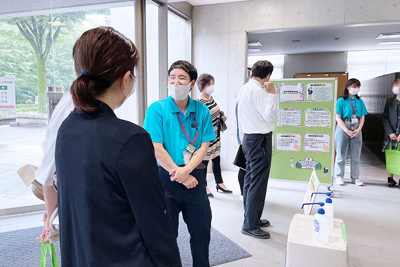 模擬授業では手洗い、アルコール消毒の仕方など今のご時世にあった授業を行いました。参加者の方々にも一人一人体験してもらい、「本当はこうやってするんだ」「初めて知った」「知れてよかった」などの声をいただけて嬉しかったです。