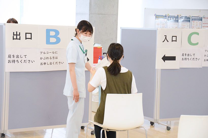 私は看護師免許は持っているものの実務の経験がなく、上手く対応できるか不安でしたが、接種ブースのスタッフの方々の対応などを参考に、接種するみなさんの緊張がほぐれるような声掛けをするよう心掛けました。