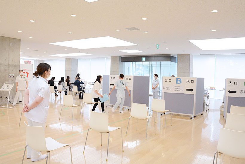 接種後に、「思ったより痛くない!」と言っていた方も多くいました。何か異常が生じた際には、医師や看護師などの医療スタッフが何名もおり、ストレッチャーや車いす、救急カートや酸素投与の準備も整っていますので、緊張しすぎずにリラックスしてワクチンを受けてもらえたらと思います。