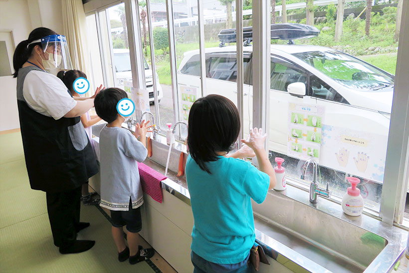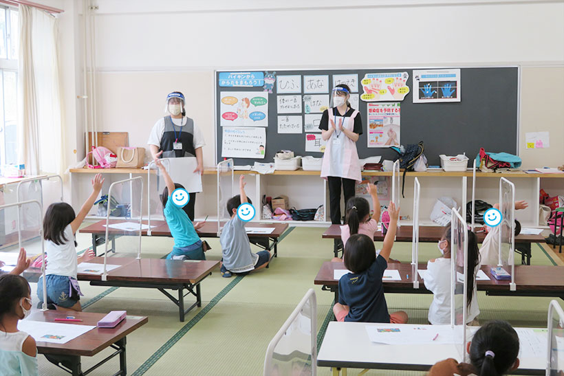 授業では、児童たちの馴染みのあるアンパンマンのイラストを使用したり、手洗いの歌の音楽を使用したりして児童と楽しい時間を送ることができました。