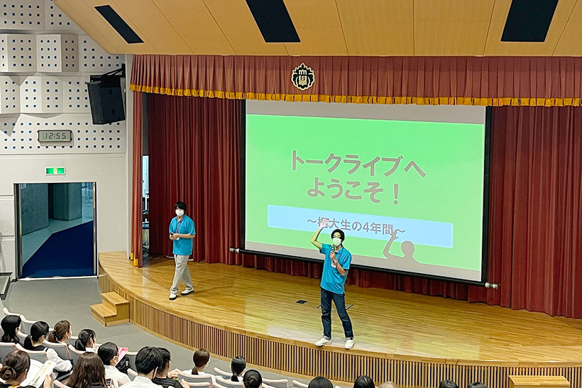 私は、初めは人前で話すのが苦手だったり、うまく意見を伝えられなかったりと消極的な性格でした。でも、回を重ねるごとにだんだんと慣れていき、3年生と4年生ではトークライブやオープニングトークに参加できるほどに成長しました。