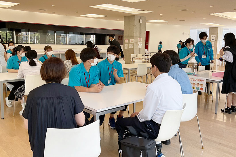 「在学生と話そう」では、先輩スタッフにお供して高校生の方々とお話しさせていただきました。初めはちゃんと話せるか不安でしたが、先輩にフォローしていただきながら桐大の素敵なところをお伝えできたかなと思います!