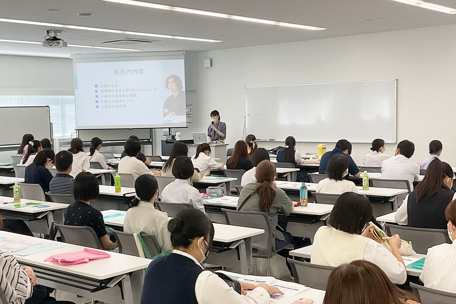 今回のオープンキャンパスの内容は、学科説明、模擬授業、ミニ体験、キャンパスツアーや在学生と話そうなどの基本的なプログラムに加え、なかなか聞くことができない卒業生のトークライブや入試科目の小論文の対策講座など、どれに行こうか迷うほどの濃密なプログラムで実施されました。