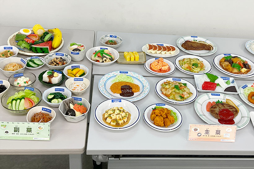 このプログラムは、たくさんの食品サンプルから自身で献立を考え、その栄養素を食育SATという機械を用いて、5段階評価してくれるという体験ができます。