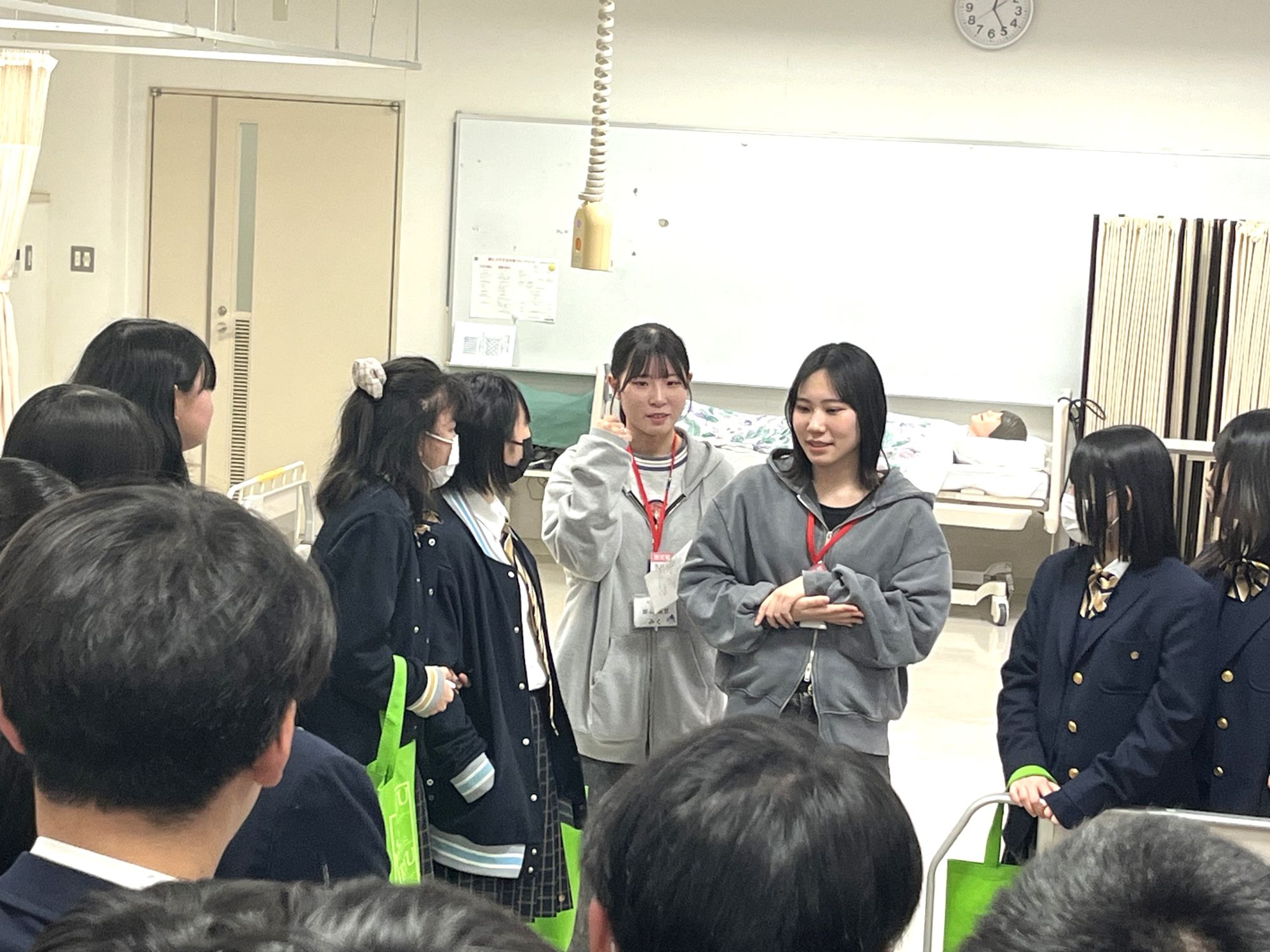 施設見学では、看護学生が普段使用している教室や演習室、物品を紹介しました。
