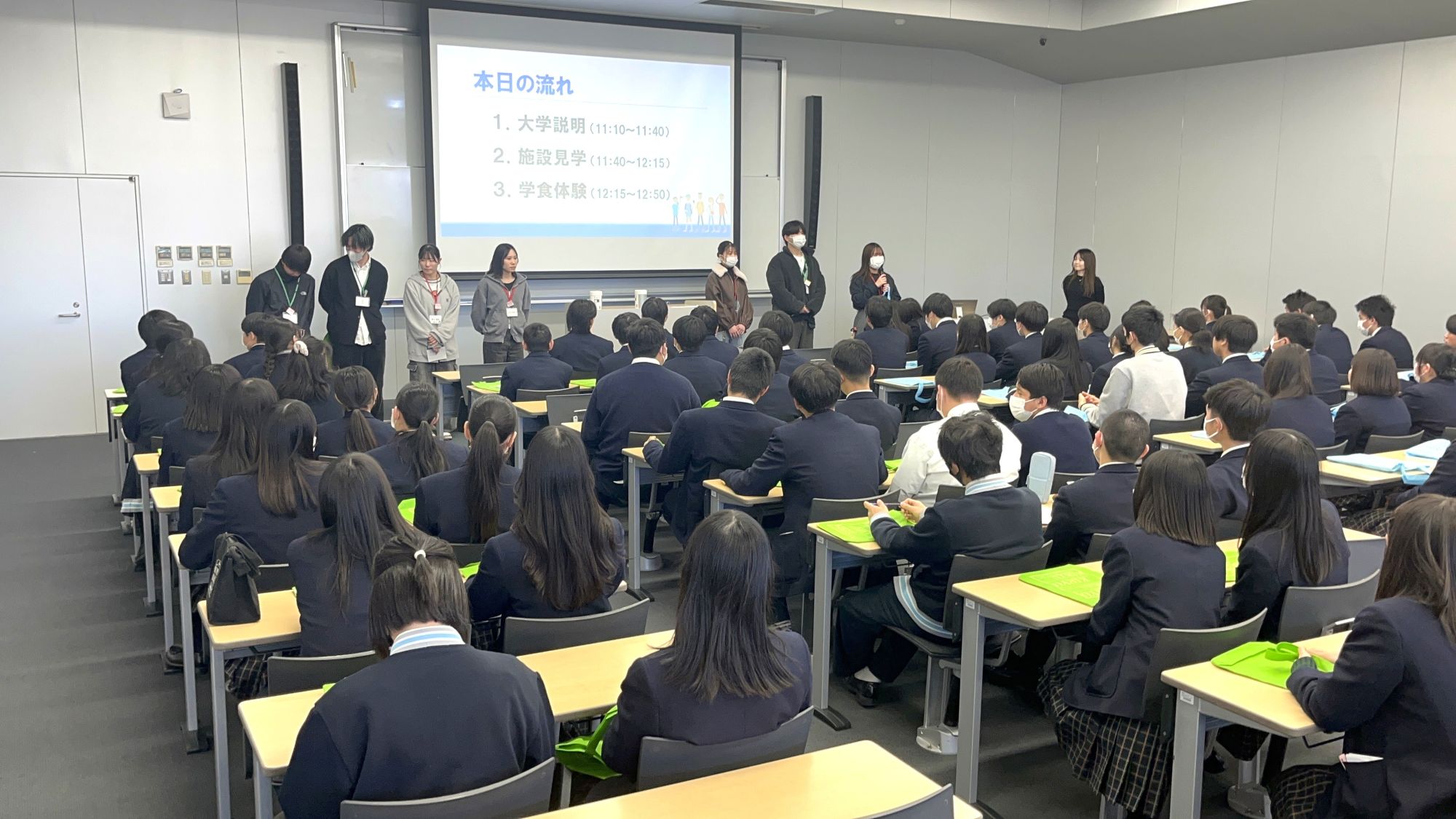 今回は、大学説明、施設見学、学食体験の3つのプログラムを行いました。